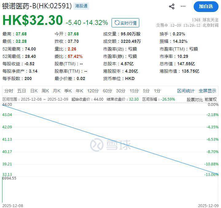 银诺医药-B(02591.HK)“入通”后炒股配资门户配资,股价已累计跌去26%。截至发稿,该股跌14.32%报32.300港元/股。